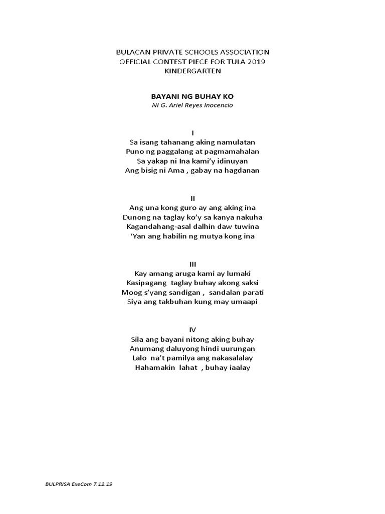 Bayaning Kabataan Vigan Ilocos Sur. The Bayaning Kabataan BK envisions itself as a reliable volunteer youth organization empowered by dedicated and. BULPRISA ExeCom 62218 BULACAN PRIVATE SCHOOLS ASSOCIATION 2018 OFFICIAL CONTEST PIECE FOR TULA For Elementary Level 1 KABATAAN.