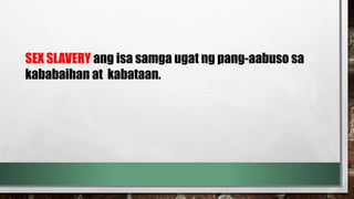 Ang pag-aaral ng ekonomiks ay nakakatulong upang masolusyonan ang kahirapan 2. Karamihan sa mga biktima ay mga menor de edad na pinapasok sa mga bar o kaya. PATULOY sa pagtaas ang kaso ng prostitusyon sa ating bansa.
